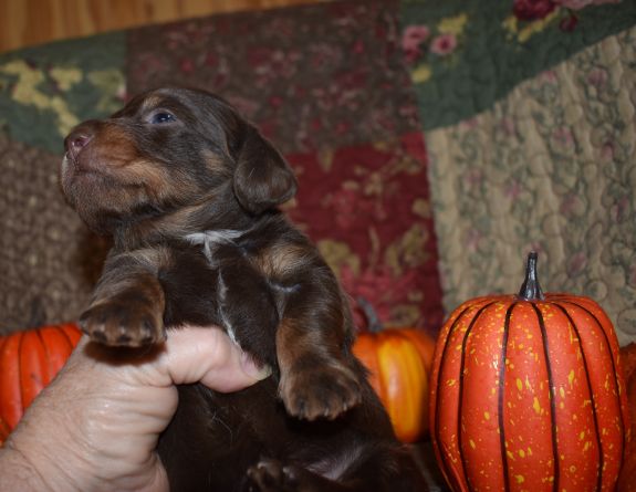 They call me "Charlie" I'm a long hair chocolate and tan male. I'm AKC Registered and was born on 10-22-2025. My parents are Stella and Maverick. I'm $1,600 with Limited Registration. With Limited Registration means that the dog is registered but No Litters produced by that dog are eligible for registration. I will turn eight weeks old on 12-17-2025. For more information about me please call Debbie at (830)456-9640 or Email Debbie at debbiesdachshunds@yahoo.com